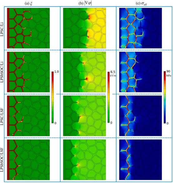 图8.电池界面处的相场模拟结果对比